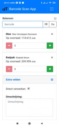 Installeer deze app op uw Android smartphone of tablet of gebruik een industriële Android barcode scanner om snel en eenvoudig uw voorraad te beheren. Of gebruik de webbased app op uw smartphone, tablet of pc. Verwerk snel uw binnenkomende goederen en zet uw inkooporders om in nieuwe voorraad. En pick uw verkooporders snel uit uw magazijn met real-time inzicht of uw voorraad voldoende is om de orders te verwerken.